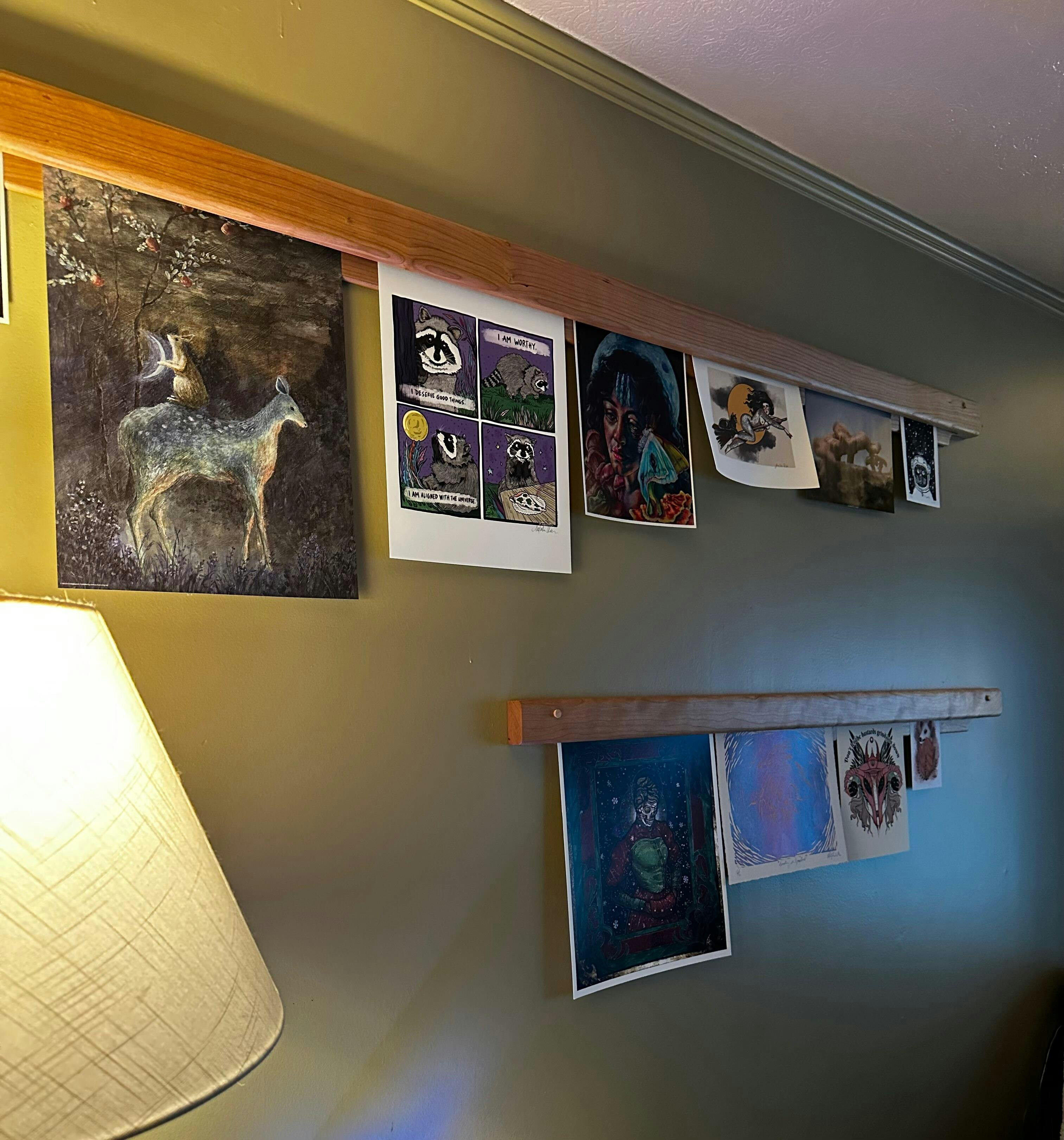 Secondly, the product is every bit as beautiful as I hoped. The wood is smooth, beautiful quality, and very well built. I love that hanging the gravity bars involves no frills, just two screw holes so you can easily level the bar by yourself. The bar also works very well for holding your prints, of course. It holds very securely but doesn’t damage the material.